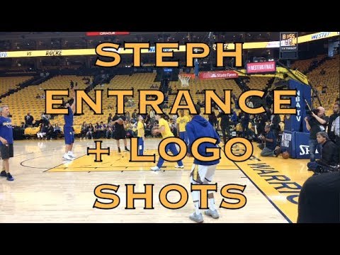 Steph Curry arena entrance, corner 3 and logo shots from Oracle Arena, pregame 2018 WCF G6